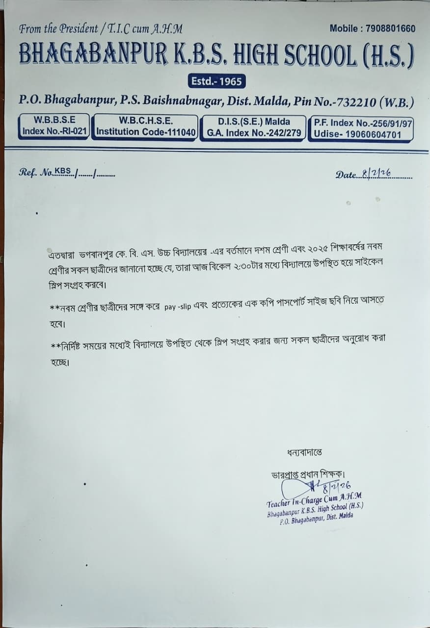 অতি সম্মানিত শিক্ষক-শিক্ষিকা, শিক্ষাকর্মী, অভিভাবকবৃন্দ এবং আমার প্রিয় ছাত্র-ছাত্রীরা— আজ ভগবানপুর কেবিএস উচ্চ বিদ্যালয়ের পক্ষ থেকে আপনাদের সামনে কিছু কথা প্রকাশ করতে পেরে আমি নিজেকে অত্যন্ত সৌভাগ্যবান মনে করছি।